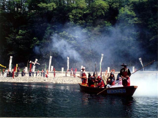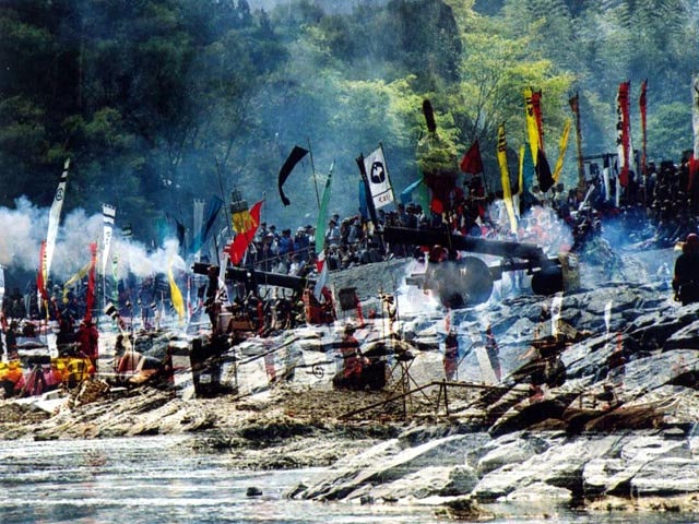 pinアトラクションは9:00~(玉淀河原)、武者隊パレードは11:15~(市街地)、攻防戦は14:00~(玉淀河原)、詳細は要問合せ (5月中旬の日曜)