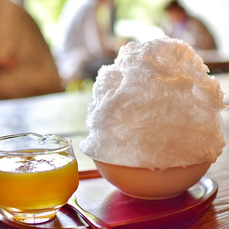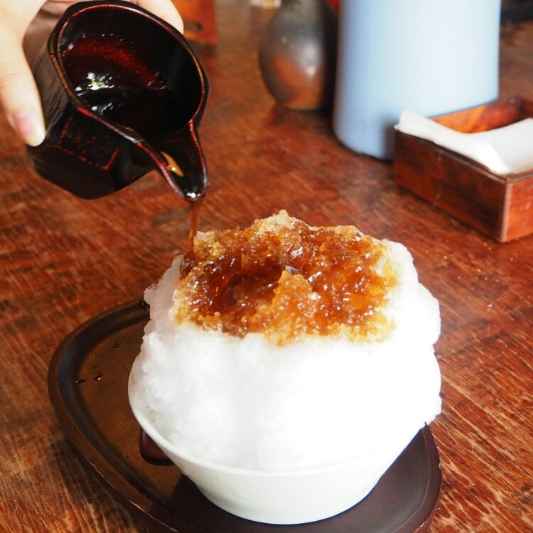 【ギャラリー喫茶やました】❹ . 《シロップかけの儀》其の2 ツレちゃん所望の 『ほろにがキャラメル』の巻 . こちらは「カラメルソース」と「練乳」のダブルシロップ構え❣️ このプリンのカラメルの様なシロップがその名の通り ビター感たっぷりのほろ苦な大人な味で たまらない😋💘 カラメルだけでも充分美味しく食べられるけれど そこへ別添えその2の練乳を追いがけするとまろやかさがプラスされてキャラメルな味わいに変身! 一粒で2度美味しいかき氷でした🍧 . . キラキラのシロップ キラキラのかき氷 The日本の夏🌻 . . 後かけタイプは シロップをかける量の配分が大切ですね🍧 . . . . . . . . やましたさんでは、 阿左美冷蔵の『秩父源流水』を使用した天然水の純氷🧊のかき氷が頂けます🍧 ⚠️天然氷ではありません (阿左美冷蔵さんの『天然氷』は自家消費のみで外部には卸していないと、以前に業界筋の方から聞いた事があります。 阿左美冷蔵の『天然氷』🧊を頂けるのは直営店のみ❗️) とはいえ!秩父源流水を文明の力で(笑)じっくり凍らせた氷も美味しいです❣️ 店内のメニューには 天然氷ではない事は表記してありました。 . ★阿左美冷蔵直営店も天然氷🧊の在庫が切れると純氷へ切り替わります。 例年、晩秋頃から翌年の新氷の収穫が済む1月下旬頃までは純氷での提供となっているようです🍧 あくまでも在庫状況次第ですけどね。 . . . . . 埼玉県秩父の長瀞にあります宝登山神社の参道沿いの高台に佇むギャラリー喫茶☕️ 素材にこだわった手作りのお菓子,かき氷,窯焼きピザなどがたのしめます🍪🍧🍕 高台にあるから参道の人々の往来が直接見えず 緑に囲まれた様な景色に癒されます。 . . #埼玉#秩父#長瀞 #宝塔山神社 #カフェ#甘味#かき氷 #キャラメル #ギャラリー喫茶やました #ゆるり夏時間 #ゴーラー隊