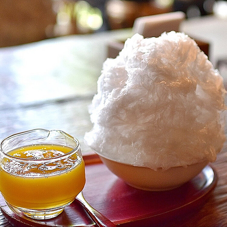 【ギャラリー喫茶やました】❷ . . マンゴーかき氷をチョイス🥭 シロップは、別添えの後がけタイプでした。 . やましたさんでは、 阿左美冷蔵の『秩父源流水』を使用した天然水の純氷🧊のかき氷が頂けます🍧 ⚠️天然氷ではありません (阿左美冷蔵さんの『天然氷』は自家消費のみで外部には卸していないと、以前に業界筋の方から聞いた事があります。 阿左美冷蔵の『天然氷』🧊を頂けるのは直営店のみ❗️) とはいえ!秩父源流水を文明の力で(笑)じっくり凍らせた氷も美味しいです❣️ 店内のメニューには 天然氷ではない事は表記してありました。 . ★阿左美冷蔵直営店も天然氷🧊の在庫が切れると純氷(武州製氷(株)謹製)へ切り替わります。 例年、晩秋頃から翌年の新氷の収穫が済む1月下旬頃までは純氷での提供となっているようです🍧 あくまでも在庫状況次第ですけどね。 . . . . . 埼玉県秩父の長瀞にあります宝登山神社の参道沿いの高台に佇むギャラリー喫茶☕️ 素材にこだわった手作りのお菓子,かき氷,窯焼きピザなどがたのしめます🍪🍧🍕 高台にあるから参道の人々の往来が直接見えず 緑に囲まれた様な景色に癒されます。 . . #埼玉#秩父#長瀞 #宝塔山神社 #カフェ#甘味#かき氷 #マンゴー#ゴーラー隊 #ギャラリー喫茶やました #ゆるり夏時間
