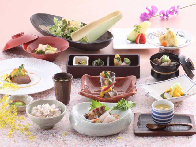 火の山公園のすぐ近くに建つ好ロケーションの宿。全面ガラス張りのレストランや浴場からは関門海峡の絶景を眺める。夕食は下関の海の幸を中心とした会席料理。ふぐのコースプランもある。
