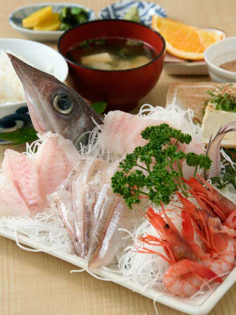 深海魚料理メインの食事処。ゴソ・メヒカリ・サメ・ノドグロなど種類が豊富。獲れたての深海魚を刺身や煮魚・フライなどさまざまな形で調理する。深海魚をあますところなく堪能できる。