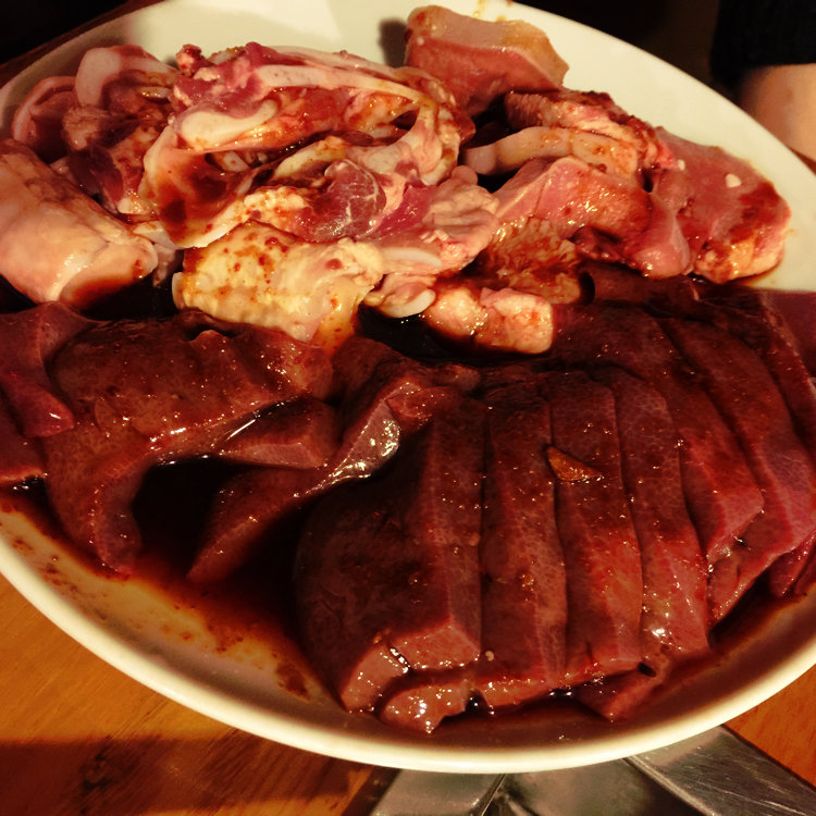 店主自ら食肉センターで仕入れた新鮮な肉に、すりおろして2~3か月寝かしたにんにくと唐辛子を使ったタレをまぶす。七輪で余分な脂を落としつつ焼く極上の一品だ。