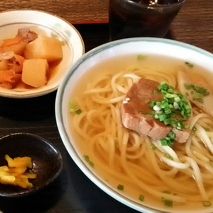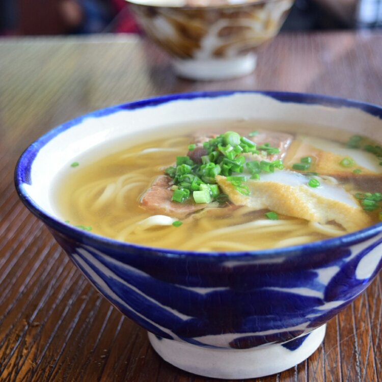 古謝製麺所が作るストレート麺がやさしい味のスープにからむ。宮古そばをはじめ、ソーキそば、カレーそばなどのそばメニューがそろう。昼どきは行列ができる人気店。