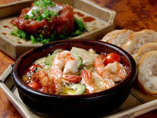 市役所通りの1本北側の十八番街にある居酒屋。島野菜をふんだんに使った料理はとってもヘルシー。オリジナルの手羽先のから揚げや美崎牛のワイン煮込みははずせない定番メニュー。