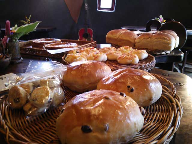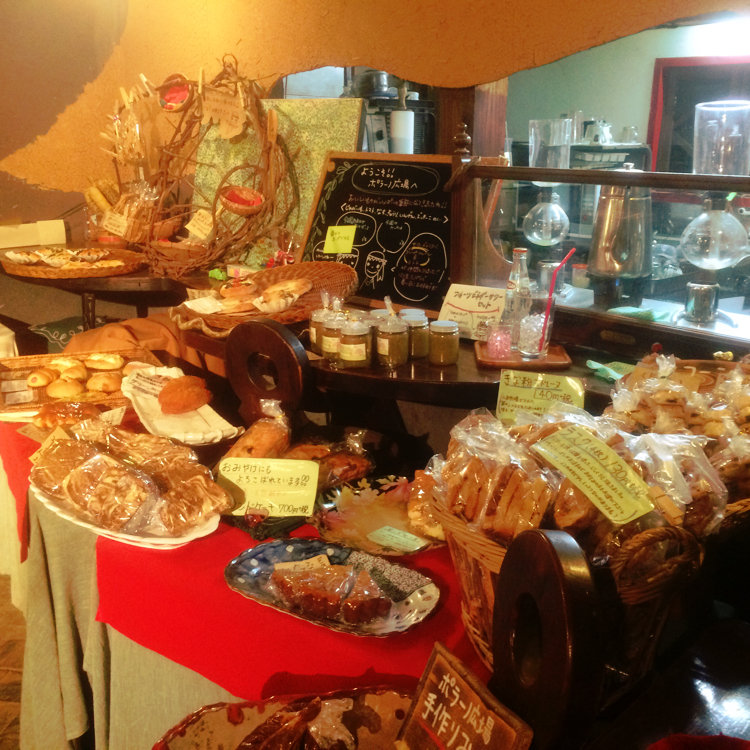 周辺にはのどかな田園風景が広がり、軒先では地元で採れた野菜を販売する農家経営の店。店内には、焼きたての天然酵母のパンが20種類ほど並び、自家栽培野菜や発芽玄米のご飯など、自然の恵みを感じるメニューが楽しめる。