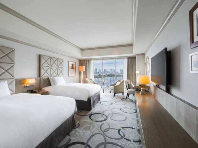 海と空に囲まれながら東京を一望できるホテル。ゆったりとした客室すべてが海に面し、全室バルコニー付きで、美しい景色を堪能できる。