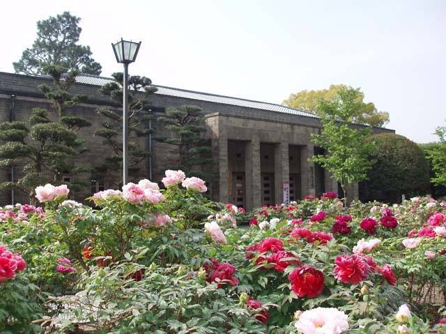 クラシックな外観が目を引く、吉香公園内の博物館。藩政時代の古文書や工芸品、旧錦帯橋の資料などを展示している。入り口付近の牡丹園は4月下旬から5月上旬が見ごろ。
