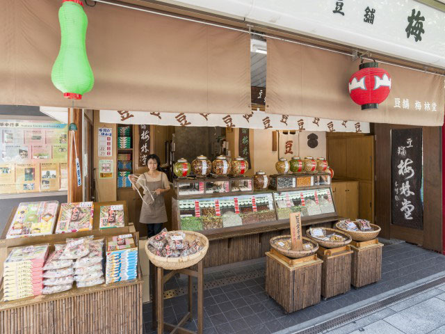 明治9(1876)年創業、豆菓子の専門店。種類は30種以上。今ではあまり見かけない昔ながらの煎豆も多い。お茶請けや酒のつまみなら、煎ったはじき豆やかた豆がおすすめ。