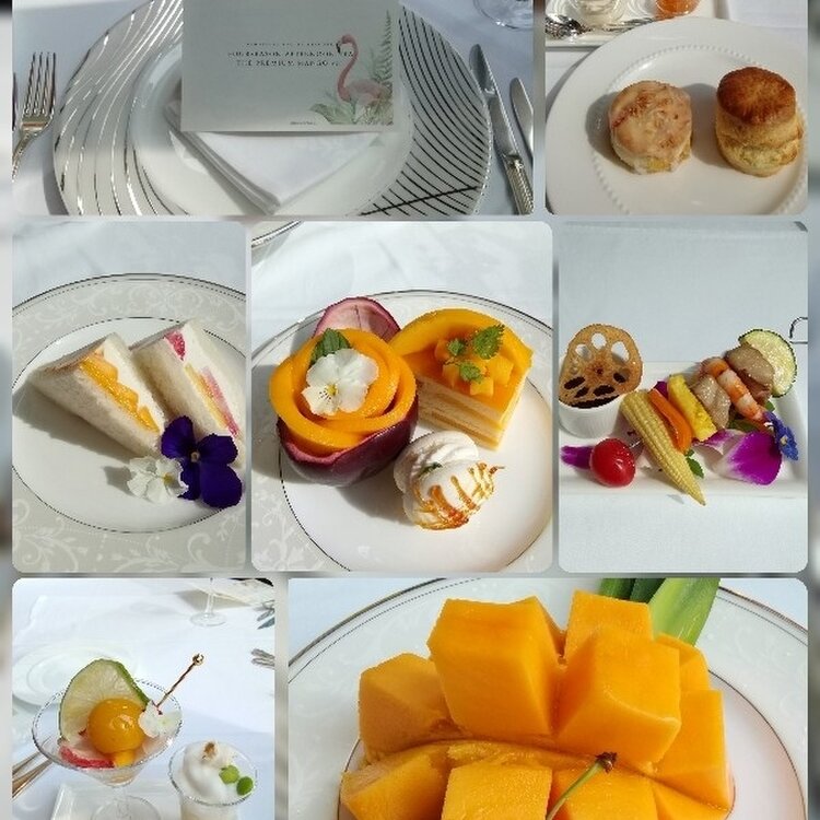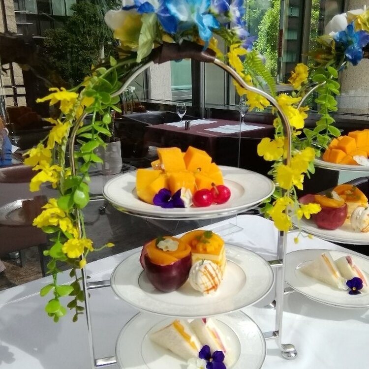 千疋屋総本店の平日限定、贅沢なプラン、 フォーシーズンズアフタヌーンティーザプレミアムマンゴーバージョン。 6月から7月中旬のアフタヌーンティーはマンゴーです。 今日はラッキーなことに宮崎県産の太陽のたまごが、 贅沢にも花咲カットされて上段のお皿に鎮座してました。 最初の金目鯛とトロピカルフルーツのカクテルに入ったマンゴーが、 とにかく甘くて感動。玉蜀黍のスープも甘くて絶品。 今日のスコーンはプレーンとトロピカルスコーン。 角切りのドライフルーツの入ったスコーンに砂糖がけした初めての味。 クロテットクリームにたっぷりのトロピカルジャムを乗せれば クリーミーで甘くて強烈に酸っぱくて、何故か爽やかな味わい。 マンゴーにパッションフルーツを加えたジャムがことのほか絶品でした。 下段のお皿にはフルーツサンドイッチ。 キウイフルーツがアレルギーな私には取り除いて出してもらいました。 中段のマカロン、マンゴーチーズケーキ、マンゴープリンが並び、 上段の太陽のたまごと佐藤錦が2粒。すごい組み合わせです。 こんなにたくさん極上のマンゴーを食べたのは人生初。 感動でしばらく幸せな余韻に浸りなから、お仕事頑張れそうです。 そう、今日は有休取りました。あー、有意義でした。 #フォーシーズンズアフタヌーンティー #ヌン活