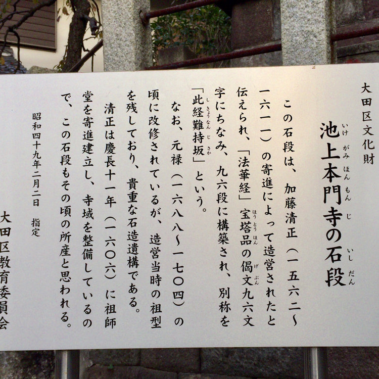 加藤清正が寄贈した96段の石段がある日蓮宗の大本山
