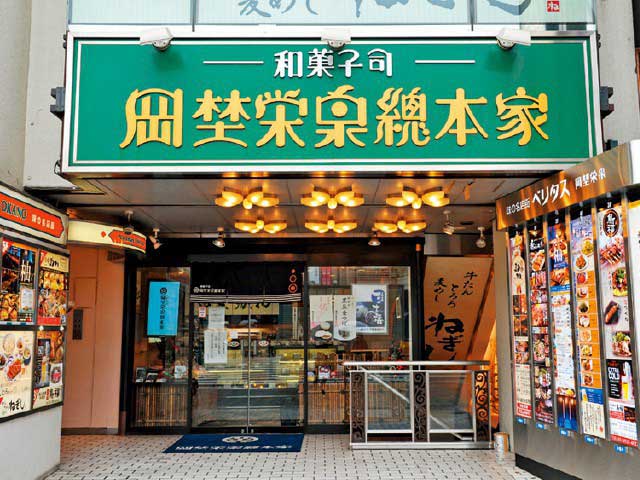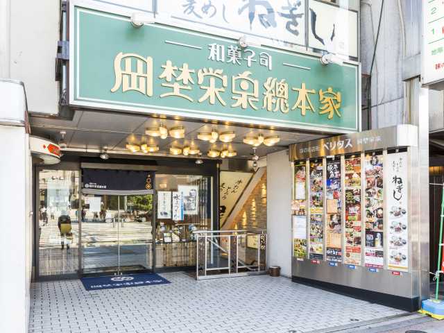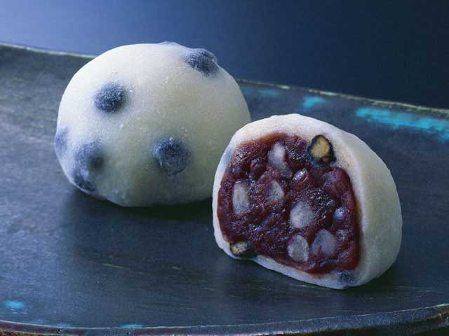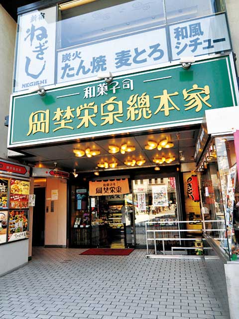 創業以来、上野駅前でのれんをかけるこの店の人気菓子の一つが豆大福。口当たりは柔らかいが、コシのある歯ざわりの餅の中に塩味の赤えんどう豆が入っている。
