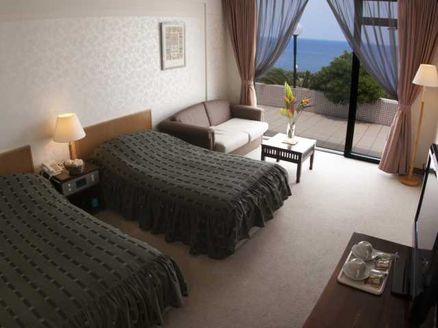 眼前に碧く広がる太平洋、八丈島の新鮮な魚や野菜を使った洋食コース料理が自慢のリゾートホテル。