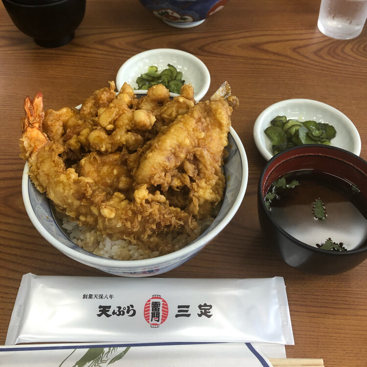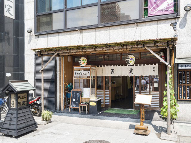 創業天保8(1837)年、雷門の脇に構える。揚げ油は上質なゴマ油とサラダ油を独自にブレンド。伝統のたれをたっぷりつけた天丼は、ボリュームもたっぷり。
