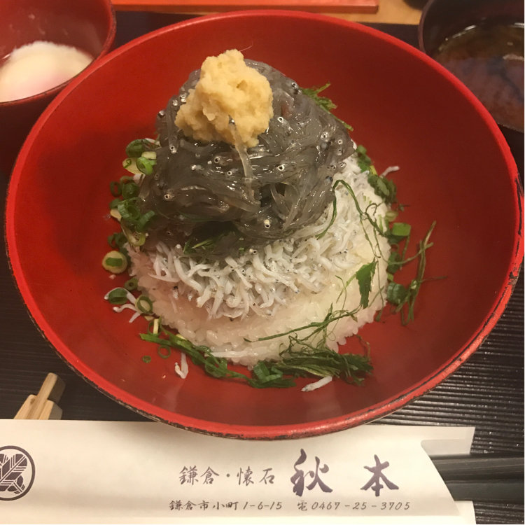 「秋本」のしらす丼。 札幌からきたスタばーちゃん(スタバ好きの親戚のおばあちゃん)の希望で武家の古都、鎌倉へ。 しらすが豊漁の3~12月に食べられるメニューですが、 この日は生しらすなし。 『 湘南釜あげしらす丼 』です。 たっぷりのしらすは、ほどよい塩気がついているので ショウガとネギだけでいただきます。 好みのタイミングで温泉玉子と土佐しょうゆをかけて。 釜揚げしらすはふっくら大きめ🐟 私は仕事の都合で4ヶ月ほど江ノ島近くまで通っていたのですが、「秋本」は2時間待ちがざらの人気店のため初めてでした。 今回は知人に教えてもらった方法(※)で待ち時間0分! 鎌倉・江ノ島にはしらすを使った料理がたくさんあります。アボカドしらす丼やオムレツ、ガレット、コロッケ、パンなどなど。 こっち来たら、しらす食うべ~(湘南弁:中居くんが使う) \(^o^)/ #鎌倉 #江ノ島 #湘南 #しらす #ランチ #秋本 #ことりっぷ神奈川 #ガイド頑張る (※以下、長いので興味のある方だけ😊 開店時間の11:00より30分~1時間前に来店し、ウェイティングボードに名前を書きます。 →その後は自由に小町通りなど散策。 →開店時間に戻ってくるだけ。 ポイントは一巡目の案内に入ること。2人席と4人席合わせて10卓のみです。 祝日でしたが10:30で私達の前は8名待ち、開店時間には後ろに40名ほど並んでいました! 開店時間に戻れば自由に散策していてよいというのはお店の方のお墨付きです。)