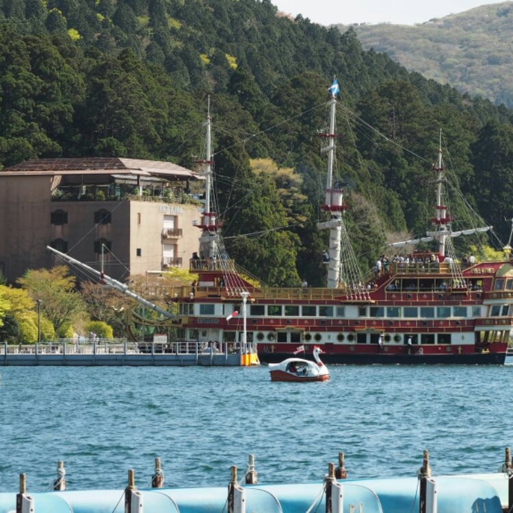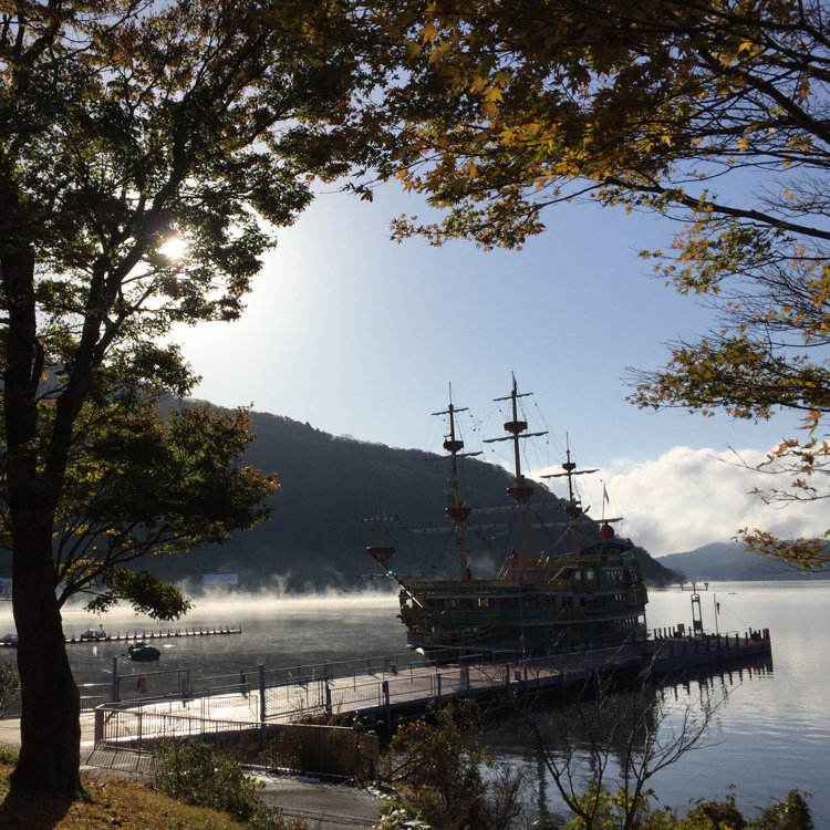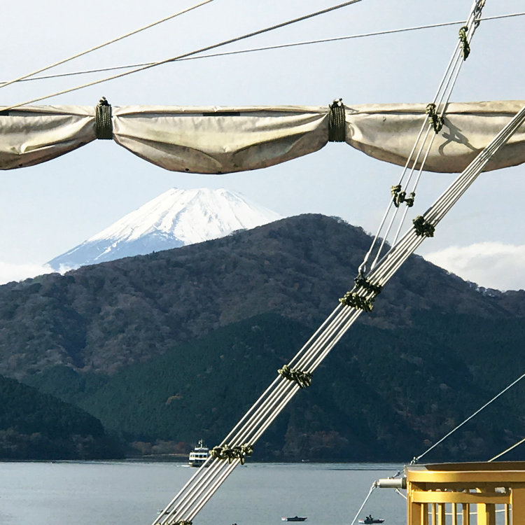 箱根旧街道を歩く 元箱根から桃源台へ 甘酒茶屋で休憩をとった後、歩みを進めること15分。お店に帽子を忘れたことにふと気づき急いで取りに戻るという失態をしたが、二子山を右手に見る頃から道は下りとなって、峠を越えたことを実感した。 木々の間から芦ノ湖のキラキラした湖面が見え、元箱根に到着した。 約2時間半の旧街道歩きであった。前半がなかなかハードな歩きだった。 元箱根にくると毎回のことだが、この先の箱根湯本までのルートの乗り換えを考えると決まって気持ちが焦ってしまうのは私だけだろうか。 今回も本当は元箱根食事をと思っていたが、乗船場が外国の方を含め長蛇の列になっていたので、早めに船に乗ろうとチケットを購入し、すぐ乗船の長い列に並ぶことにした。 しかしそれが巧を奏して、「運よく乗れればいいな」と思っていた「クイーン芦ノ湖」に乗ることができた。あのJR九州をはじめとする電車のデザインで有名な水戸岡鋭治さんがデザインした船である。 船が進み始めると、車で家族や友人たちとめぐった箱根の景色が見えてなんだか涙が出そうになった。 ふと先を見ると、富士山が少しだけ姿を見せてくれていた。 #箱根 #箱根旧街道 #元箱根 #芦ノ湖 #クイーン芦ノ湖 #甲板の上は #すごい風