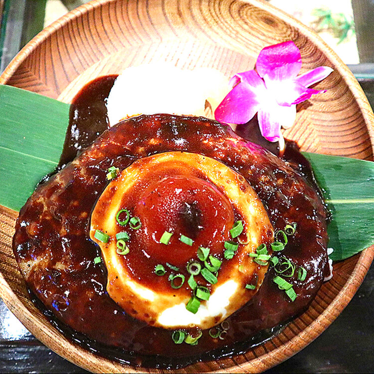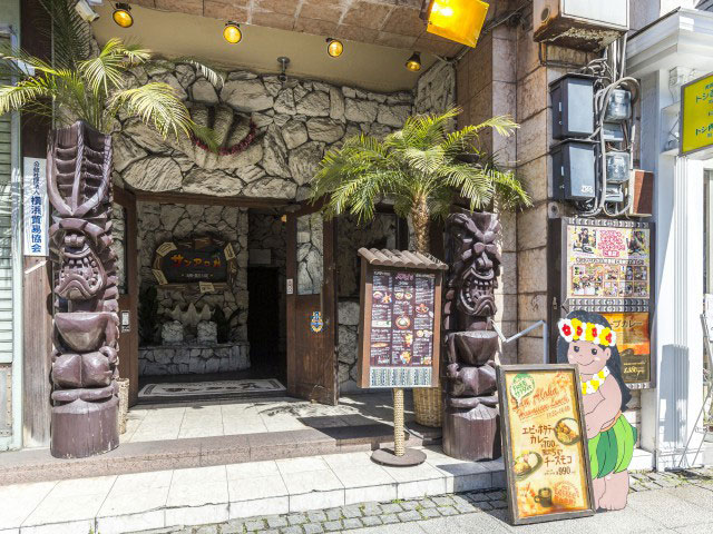 陽気なハワイアンミュージックが流れる店内で、本場のローカルフードやオリジナルフードを堪能できる。ポキサラダやマヒマヒ、ロコモコなどのほかに、常時24種類のカレーを揃えている。
