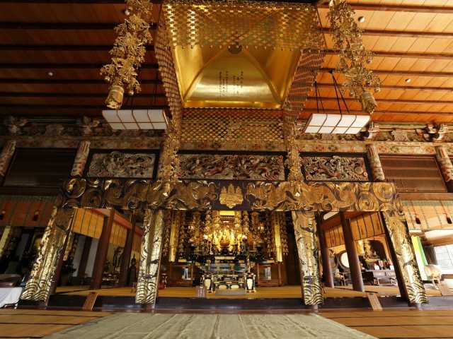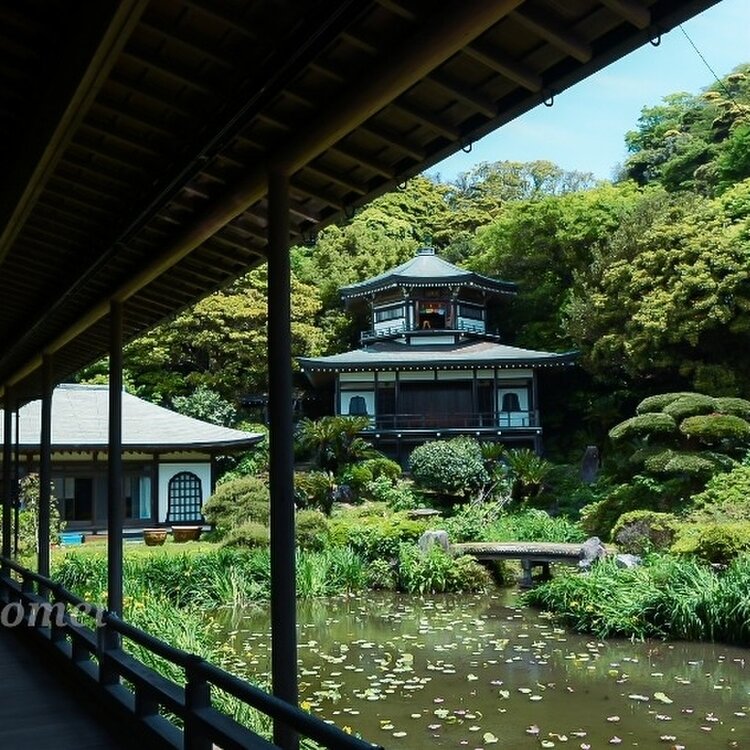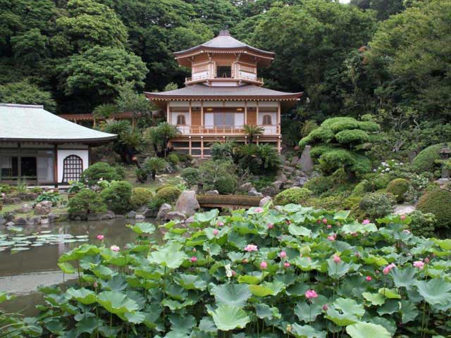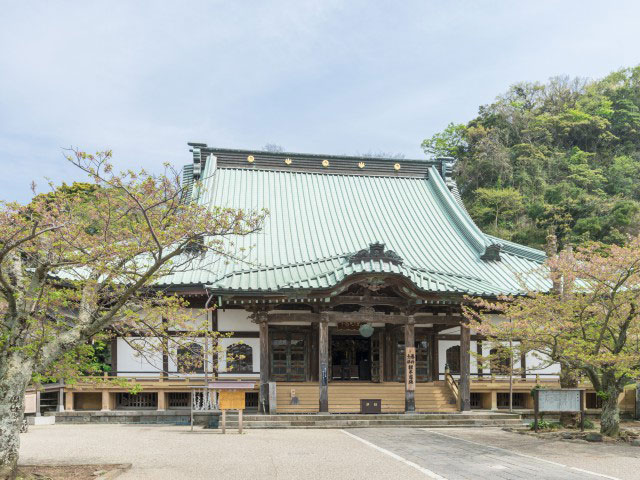 材木座に建つ浄土宗の大本山。第4代執権の北条経時が寛元元(1243)年に開き、歴代執権の帰依を受けて発展。入母屋造りの大殿の右手には三尊五祖の石庭、左手には小堀遠州作の記主庭園などの名園がある。また桜やサツキ、ハスなど四季に咲く花々も美しい。毎年10月12~15日に行われる十夜法要には市が立ち、昼夜にわたって参拝者が訪れる。