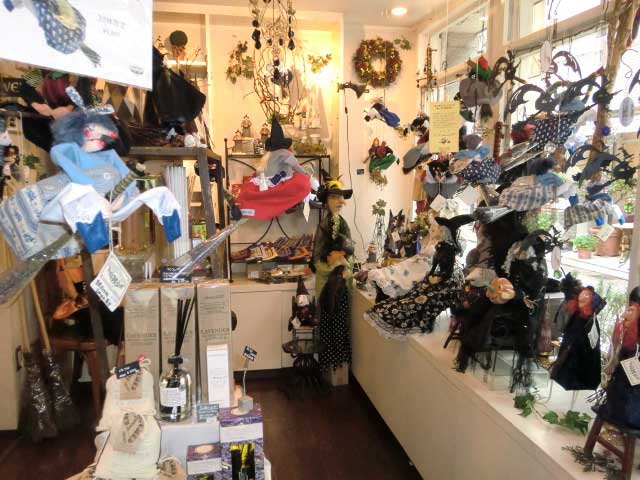 魔女とハーブの専門店。魔女人形は西洋ではキッチンウイッチと呼ばれ、魔除けとしてキッチンに飾られていた。本来魔女はハーブを熟知した薬剤師のような存在で、魔女人形は家族の健康を守るといわれる。