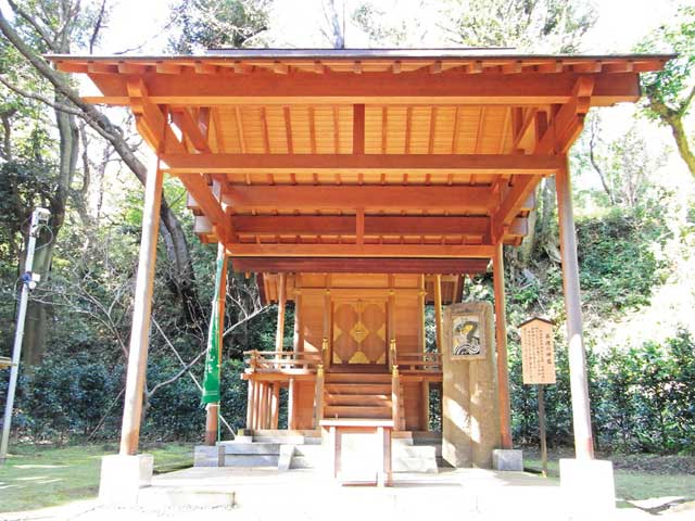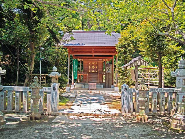 後醍醐天皇の忠臣、日野俊基卿を祀る。境内には厄除けの魔去ル石、良縁祈願の縁結び石がある。縁結び守りに付く赤いひもに5円玉を通して、縁結び石のしめ縄に結ぶとご利益があるといわれる。