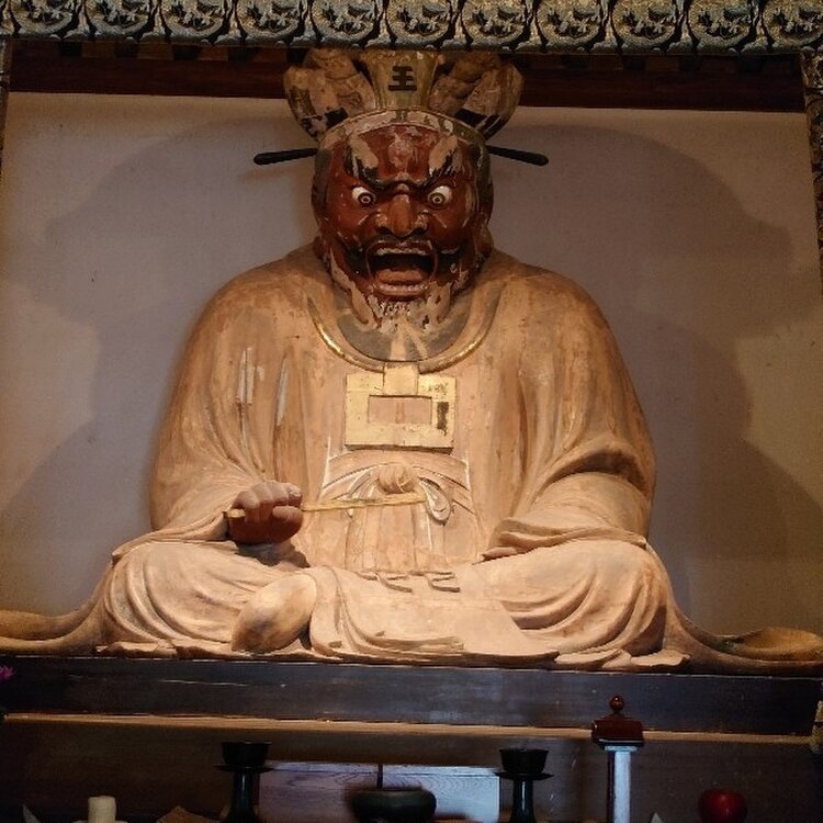 智覚禅師が建長2(1250)年に開山し、十王が祀られている。十王とは死後、冥界で出会う10人の王で、いわば生前の行いを裁く裁判官。十王堂(閻魔堂)には、木像閻魔王坐像を中心に12体の像が並ぶ。