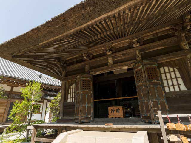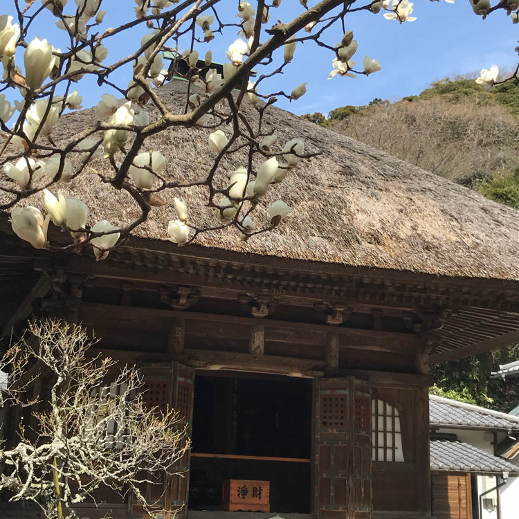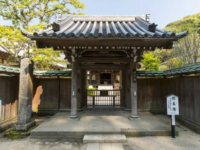 円覚寺境内で唯一観光客に開放している塔頭で抹茶を楽しめる。ここは開基の北条時宗の廟所で、鎌倉三十三所観音霊場の三十三番札所。受付で「抹茶付き」の拝観が頼める。