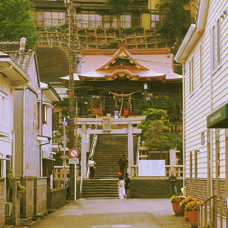 珍しい親子の狛犬がいる神社で、御祭神は誉田別尊(応神天皇)。社殿手前の石段には、源頼朝が伊豆より移植奉納したといわれるソテツがある。