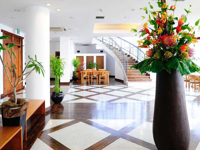 レストラン「イル ド ソレイユ」では、フレンチをベースにアジアのテイストを取り入れた創作料理を提供。開放感あふれるテラス席では、海を眺めながらゆっくりと食事が楽しめる。