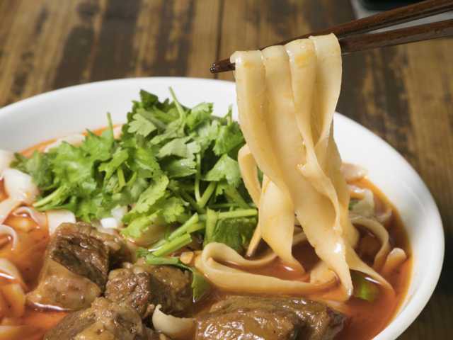 大根ほどの太さの麺生地を刀で削って、大鍋に直接入れるという刀削麺を出している、中華街で唯一の店。おすすめは看板メニューの担々麺だ。