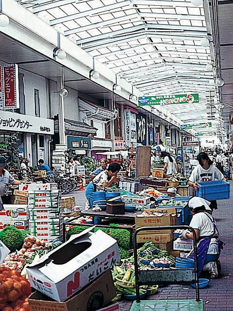 昔から新潟市民の台所とも言わてきた市場。商店街と露店が融合したような場所で、新しいアーケード街になった今でも鮮魚や惣菜を扱う店が軒をつらね、通りには野菜や果物、生花などの露店が並ぶ。