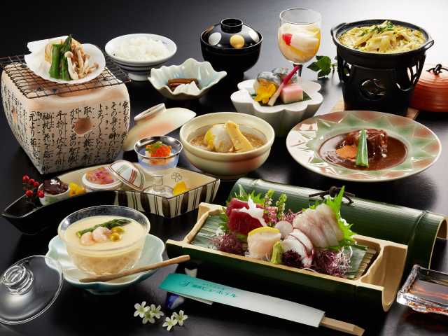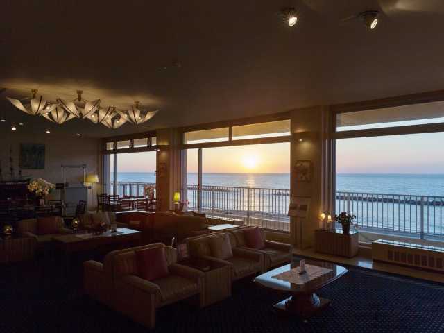 客室すべてから夕日の海を望めるホテル。三面川の鮭や日本海の幸にこだわった、宿自慢の鮮魚料理もじっくり味わいたい。山側にはいこいの森があり、大自然を満喫できる。