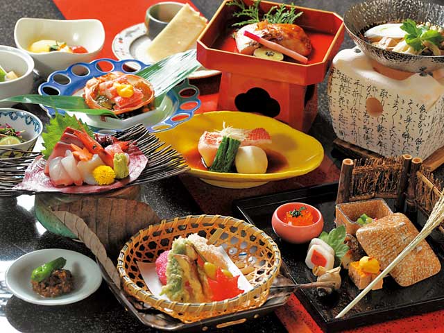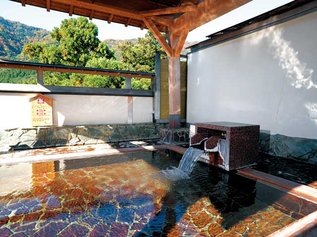硫黄の効能豊かな自家源泉“白玉の湯”の大露天風呂と旬の越後の創作会席料理が好評。