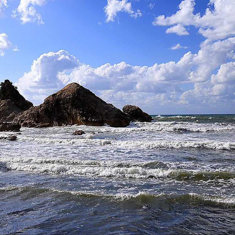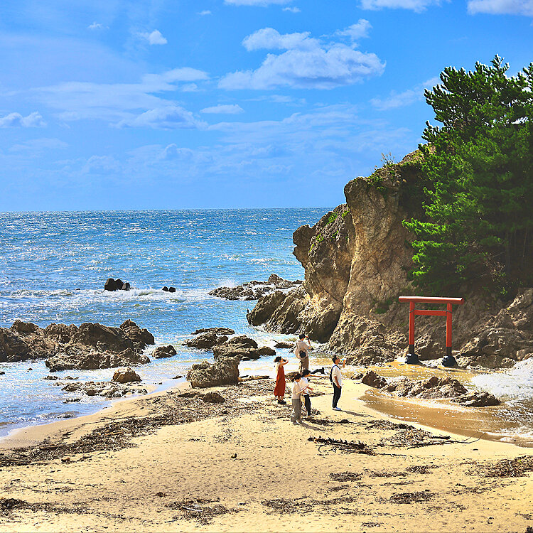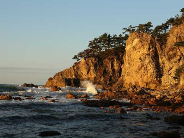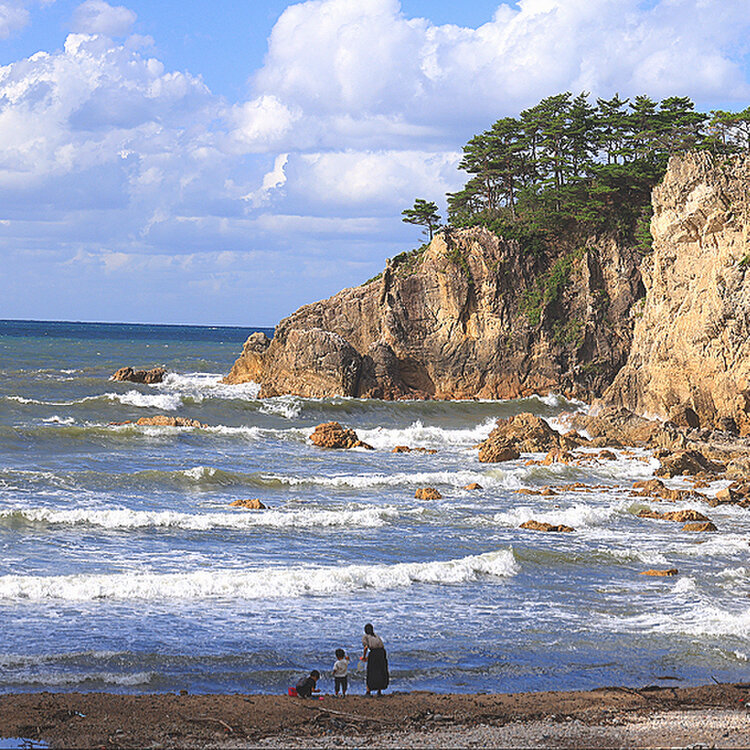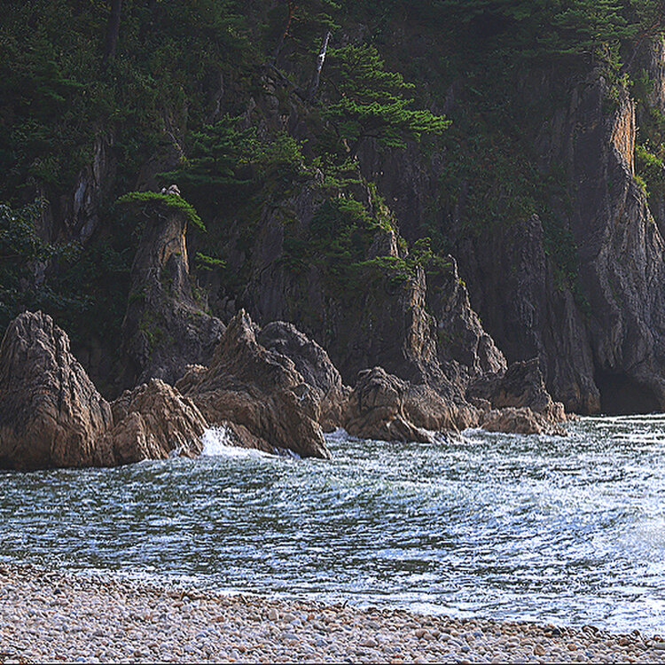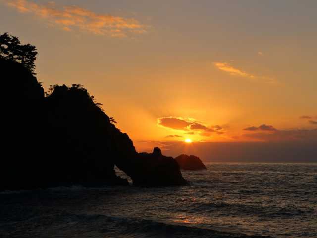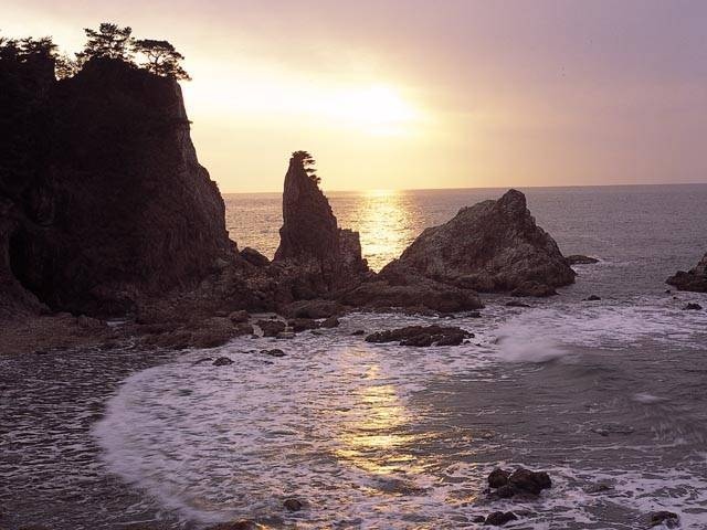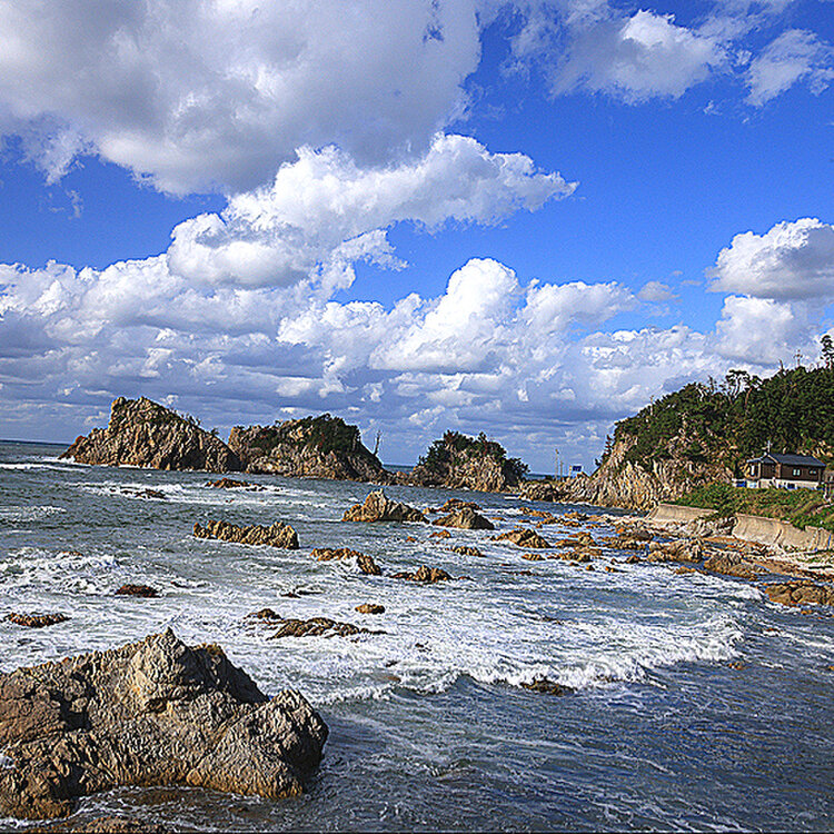 海に突き出た数々の奇岩と白浜の名勝、笹川流れは11kmも続く海岸線。この眺めを堪能するには遊覧船が一番。桑川漁港から眼鏡岩、獅子岩、恐竜岩などを巡る。遊覧所要時間40分。