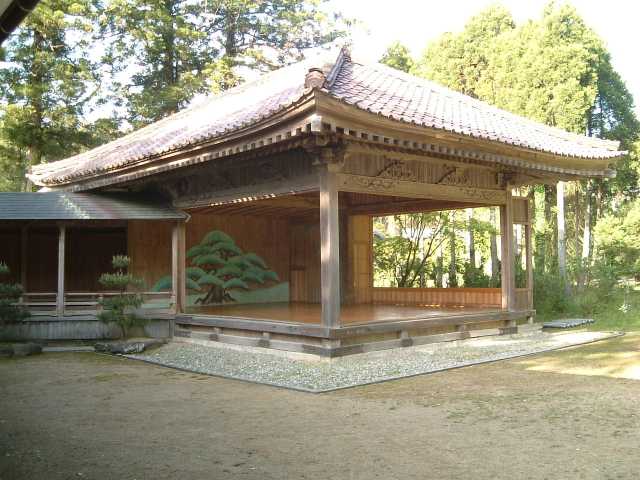 本間家は江戸時代に宗家を補う地位にあった佐渡宝生流の家元。舞台は明治中期に建てられたもので床下に音響効果のための瓶が埋められている。例年7月の最終日曜日に演能がある。