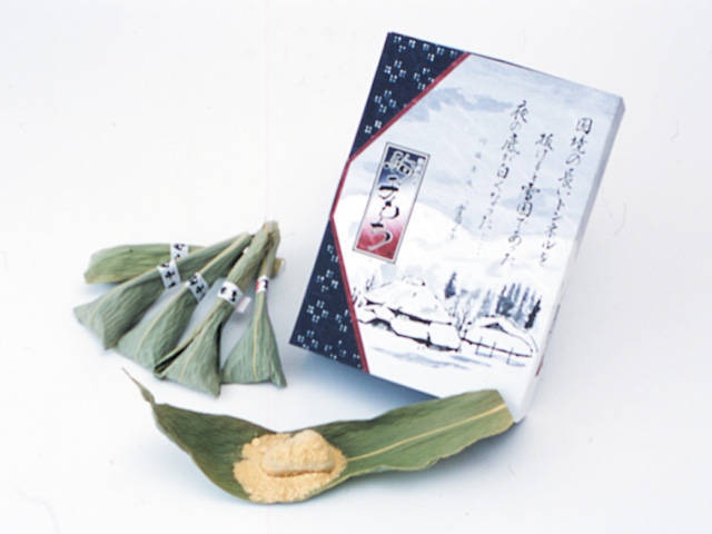 しっとりとした求肥につぶし餡を入れ、きな粉をまぶした駒子もちは、小説『雪国』のヒロイン・駒子にちなんだ看板商品。ひと口サイズで、バラ売りもしてくれる。