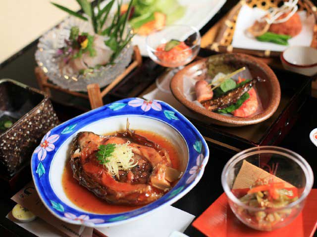 硫黄の効能豊かな自家源泉“白玉の湯”の大露天風呂と旬の越後の創作会席料理が好評。