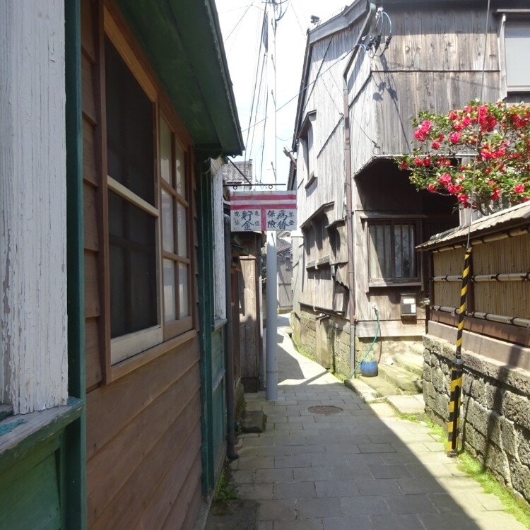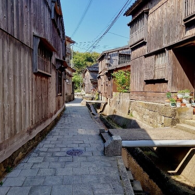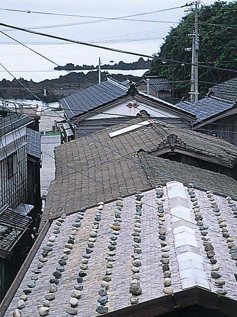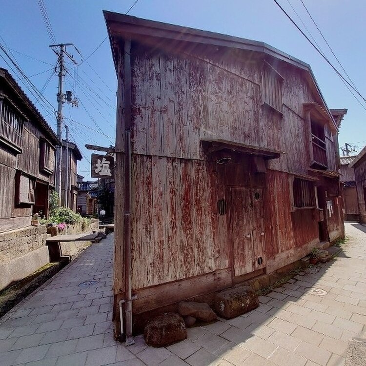 江戸時代、廻船業の集落として発達。狭い入り江に家屋が密集するため、板壁が連続している。国の重要伝統的建造物群保存地区に指定されている町並だ。