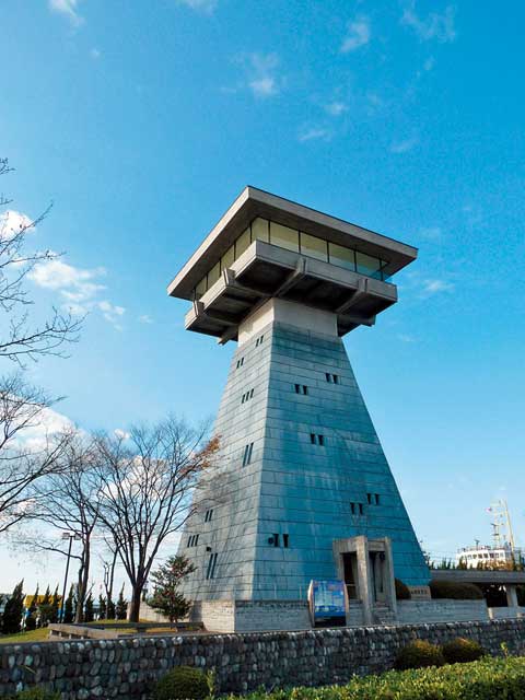 富山港の南側にある常夜灯をモデルにした展望台。高さ約20mの展望台からは富山湾をはじめ能登半島、立山連峰が一望できる。