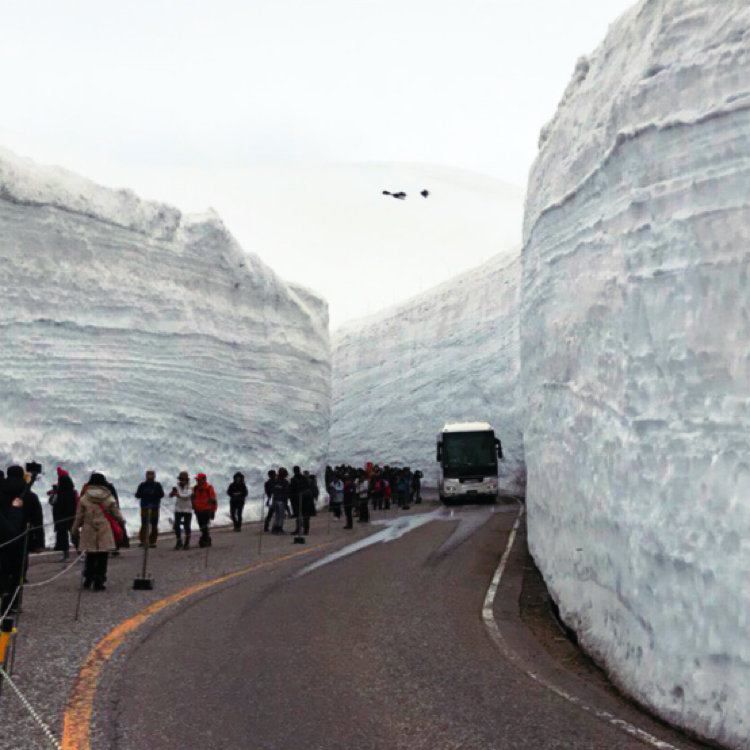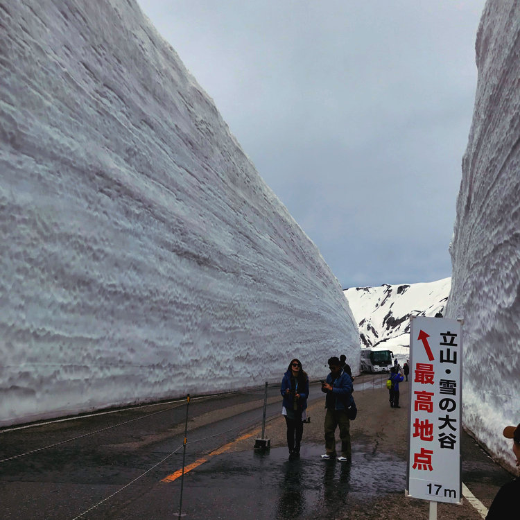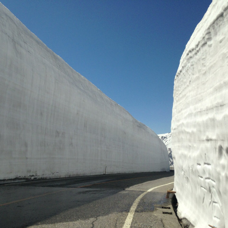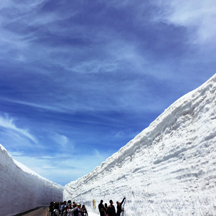 立山に春を告げるダイナミックな雪の壁