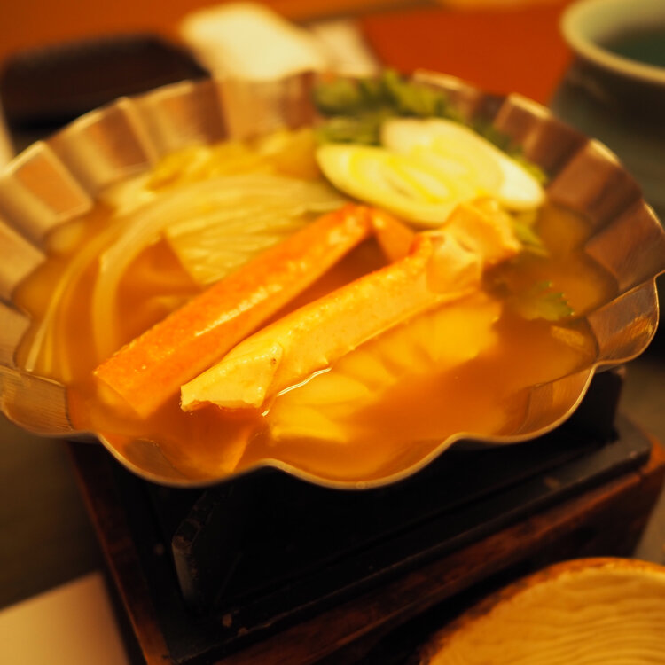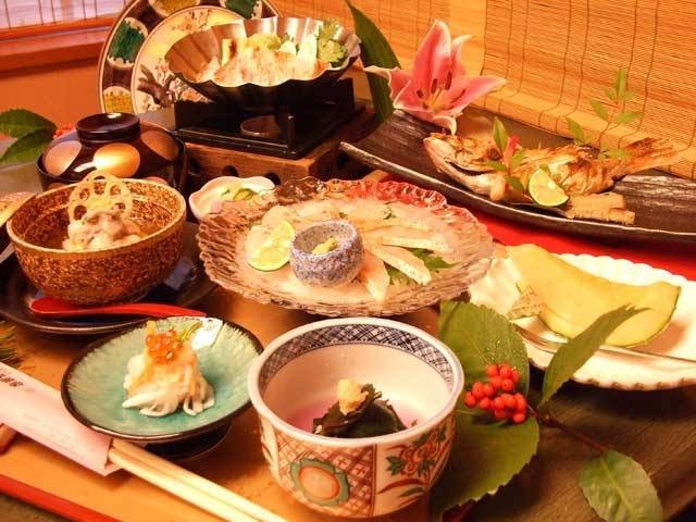 駅そばの便利な立地で、昼の会席弁当からズワイガニ満載の蟹づくし会席まで、加賀料理を手ごろな価格で味わえる。贅沢気分を高める、店内の古美術品にも注目。