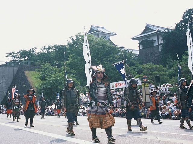 メインイベントは「百万石行列」。甲冑姿の武士や着物姿の女性が、約4時間にわたり練り歩き、利家公の金沢入城の様子を再現。豪華絢爛な時代絵巻を繰り広げる。
