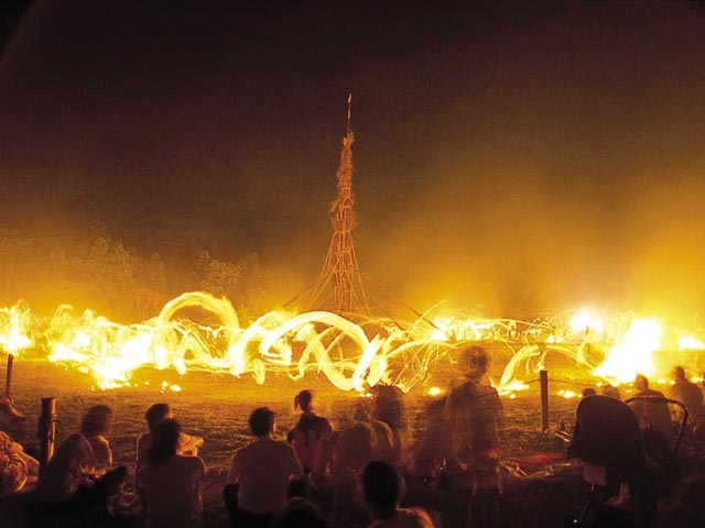 夜空を突く壮大な火柱
