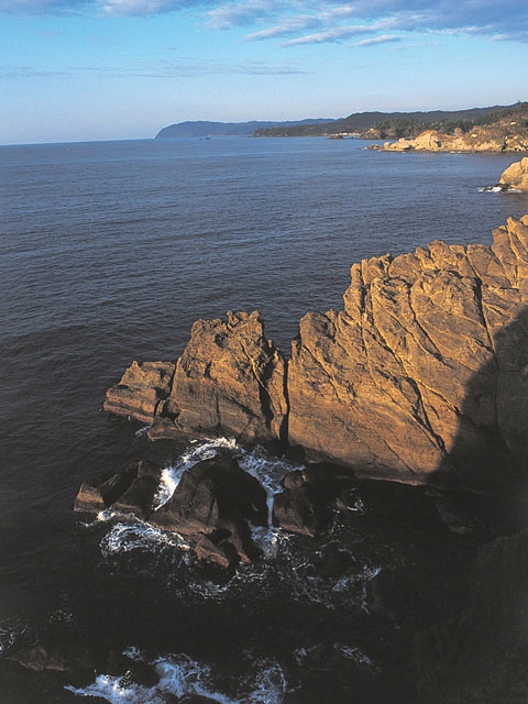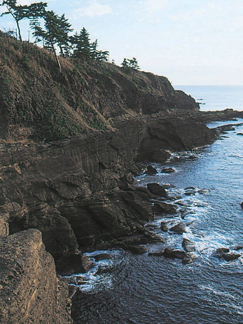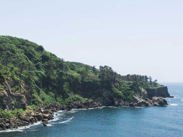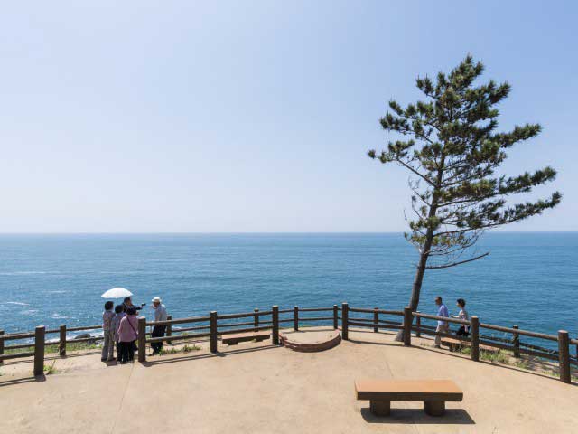 松本清張の名作『ゼロの焦点』に登場する断崖絶壁。高さ35mの崖から一望する景観は、雲が浮かぶ青い空と白波の立つ紺碧の日本海がパノラマのように広がり、息をのむ美しさ。