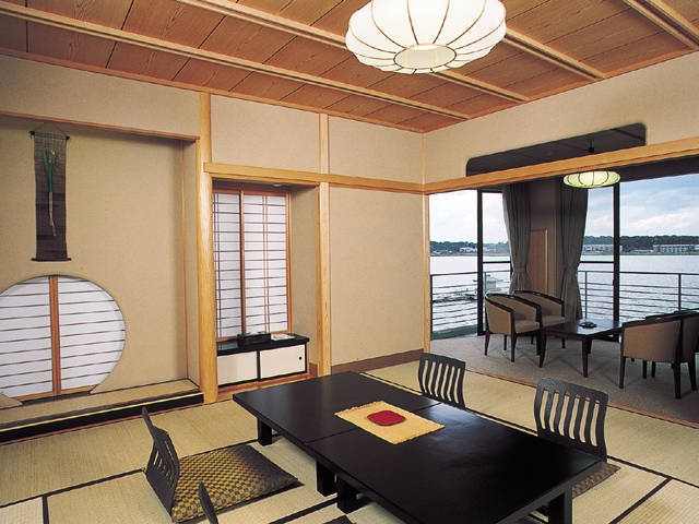 片山津温泉の中心に建つ柴山潟と白山を望む絶景宿