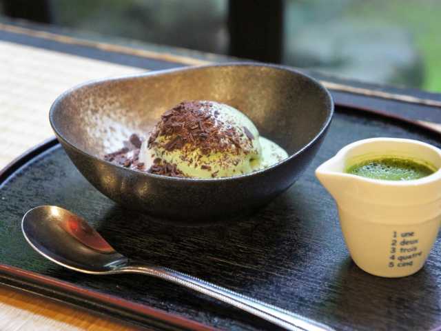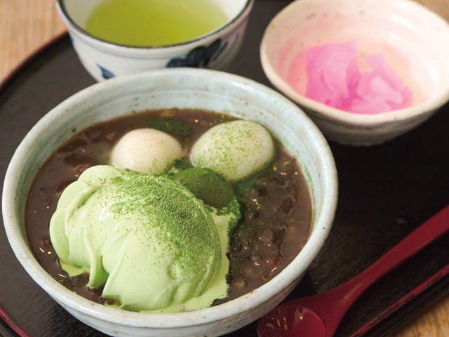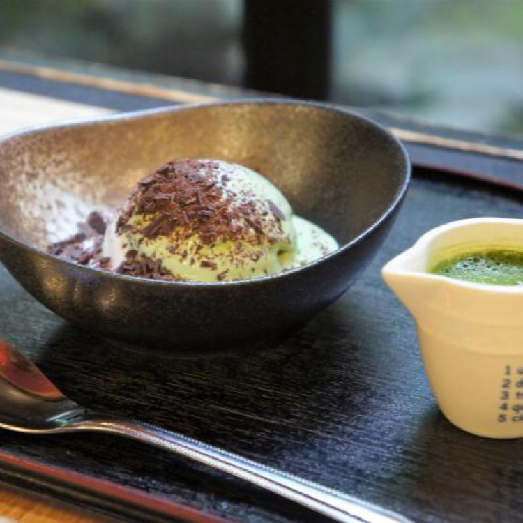 創業安政6(1859)年の老舗茶店。店先や奥の喫茶スペースで、挽きたての抹茶を使ったデザートが楽しめる。名物は抹茶・ほうじ茶ソフトクリーム。夏はかき氷、冬はぜんざいがある。