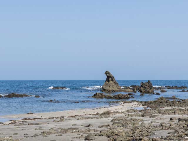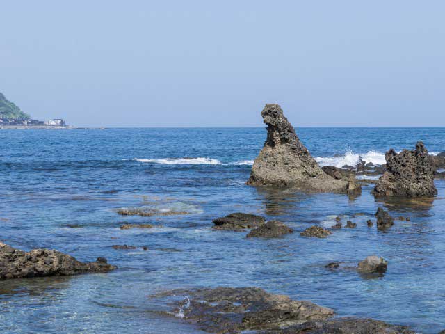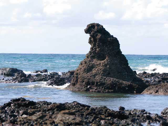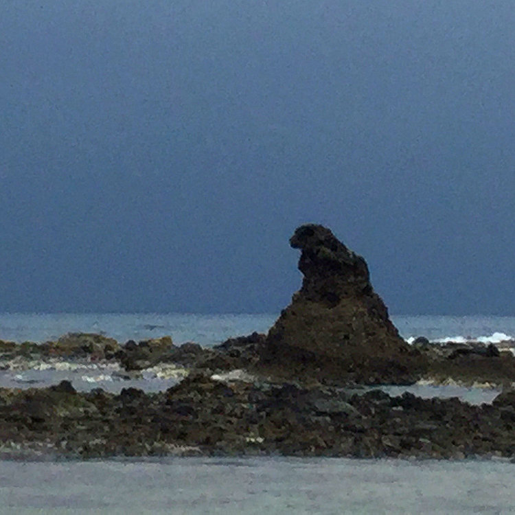 赤神海岸にある高さ4mの岩で、その名の通りゴジラが火を噴いて歩いているように見える。案内板も設置されている。