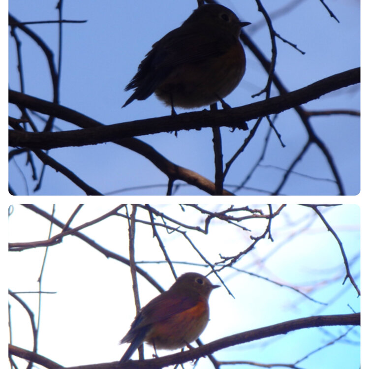 お気に入りの公園にて🐦鳥活📷🚶‍♀️ ちょうど木の幹の影が当たって、周囲より薄暗くなってる木の枝で 可愛らしいさえずり♬が聞こえました🤩 遠いし、影で暗いし カメラの液晶画面でもよく見えてないけど急いで望遠モードで撮って(写真3枚目が無修正の画像です) 帰宅後にパソコンで色補正してみて歓喜の舞✨🕺✨🕺小躍りしちゃいました💕 画像で確認できた、ほんのり青みがかった尾羽💙 『ルリビタキ』ちゃんだァァァ😍 若い男の子か女の子かわたしには判断できないのですが、今シーズンも出会えたので先ずホッとしました☺️ この日、この公園ではカワセミちゃんも見かけたので、またちょくちょく通わなくちゃ✨🚙 風が吹いて時々霧雨が降った天候だったけど 小鳥と出会えると思うと寒さを忘れて夢中で歩き回れるんですよね🤗 公園を後にしたら猛烈にお腹が空いてきて 我慢できず、ラーメンを食べに 「神座(かむくら)」に立ち寄ってしまいました😋 プレミアムチャーシューラーメン🍜❤️ 細打ちの麺に野菜たっぷり、薄切りの柔らかなチャーシューを食べてスープをすするとあったまるぅー🥰いかに身体が冷えていたのか、胃袋が教えてくれた気がしました😆 #ルリビタキ #野鳥 #鳥活 #ラーメン #神座 #カムクラ #あったか時間