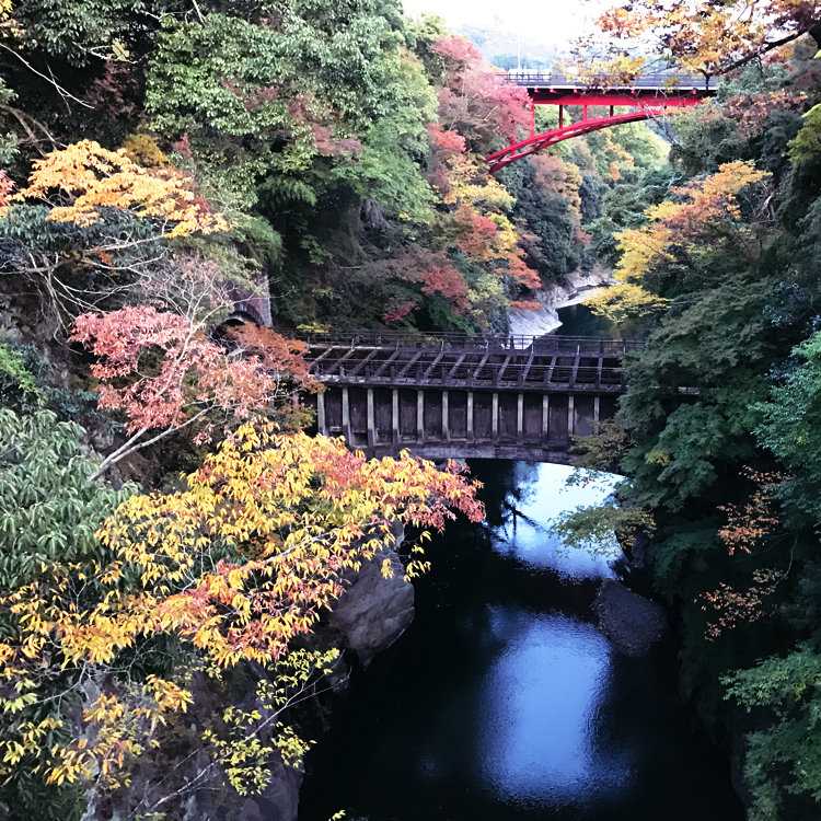 「猿橋」の広場の脇からすぐ行ける 県道の「新猿橋」 こちらにもぜひ足をのばしてみて下さい。 県道の「新猿橋」の欄干には 猿たちが身を呈して橋になる姿? のデザインが!! この欄干のデザインは「猿橋」の由来から… 川の両岸に猿が現れ、 両岸から手をさしのべあって橋を造り 対岸に行き来し始めたそうです。 この光景を見た志羅呼(百済からの渡来人とされる・または橋の作り人の呼名)は、両岸から材木をせり出すことで橋を架ける工法を思い付いたと云われています。 谷が深いため橋脚ではなく横から張り出した「はね木」で支え、しかも腐食を防ぐため雨から守る屋根付きの構造が奇橋と云われています。 r505号(県道) 小和田猿橋線 と R20号(国道) には同名の『新猿橋』があります。 こんな近くに同じ名前の橋って 珍しいですよね😲 r505 新猿橋から「猿橋」を望む景色 「猿橋」・「八ツ沢発電所第1号水路橋」・「R20 新猿橋」写真だと赤い橋見えにくいかも😅 渓谷に架る三つの橋が見えます😉 猿橋から見る景色の方が良いかな😆 (次の投稿) 2022.06.24 #猿橋 #ことりっぷ山梨 #山梨県 #山梨 #大月市 #日本三奇橋 #桂川 #渓谷 #橋 #欄干 #猿橋公園 #新猿橋 #八ツ沢発電所第1号水路橋 #アートみたいな景色 #Myことりっぷ