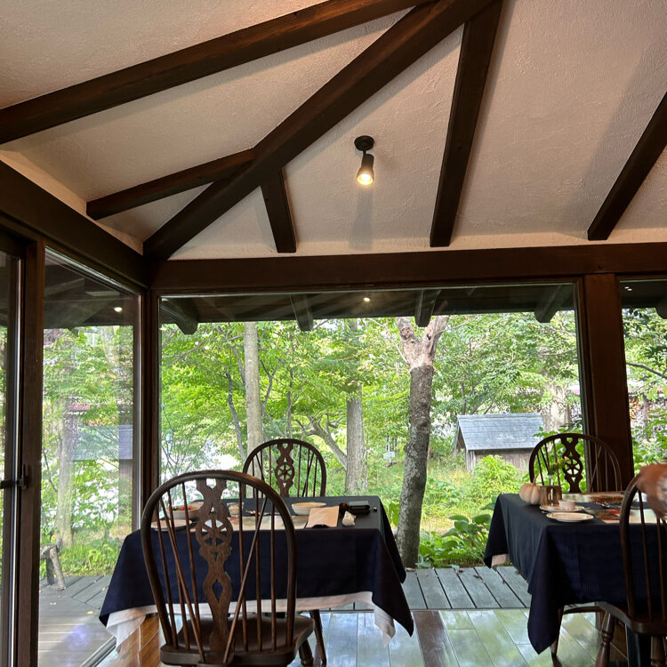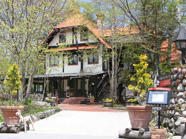 萌木の村の緑豊かな場所にあるホテル。客室はシンプルだが温かみを感じさせる作りだ。1階のレストラン「ネスト」では野菜ソムリエの資格を持つシェフによる自家栽培の野菜を使った本格フレンチ料理と地元ワインを堪能できる。2階のバーラウンジ「パーチ」は国産のウイスキーから本場のスコッチウイスキーまで、幅広く取りそろえている。