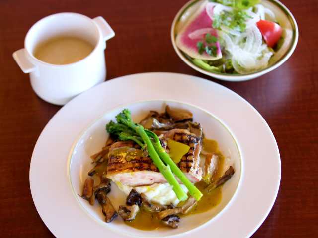 清泉寮本館2階にあるクラシカルな雰囲気のレストラン。窓の外には八ヶ岳の雄大な景色が広がる。地元の旬の食材を生かしたカジュアルイタリアンのメニューを楽しみたい。