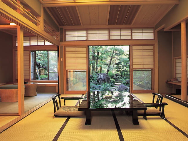 河口湖駅で初めてのヴィラタイプの宿泊施設。全室とも和洋室で広さは48平米。天然ゲルマニウム薬石風呂付